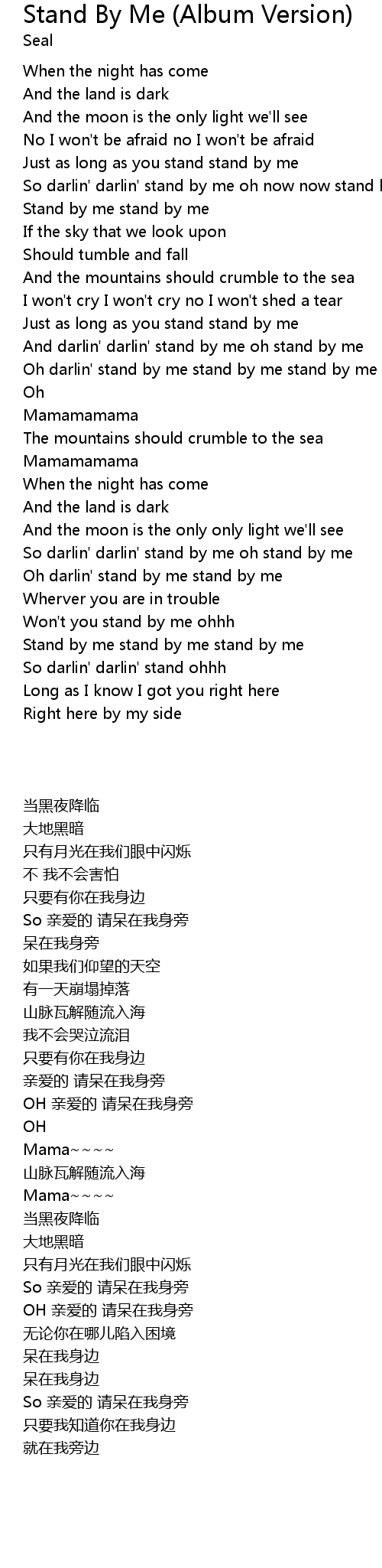 | [00:51.310] | So darlin' darlin' stand by me oh now now stand by me |