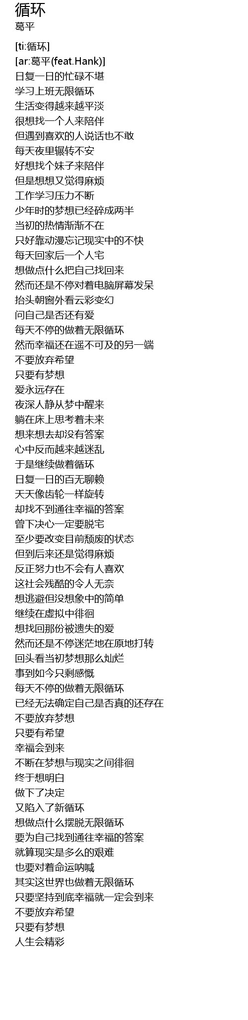| [02:36.891] | yòu xiàn rù le xīn xún huán |
