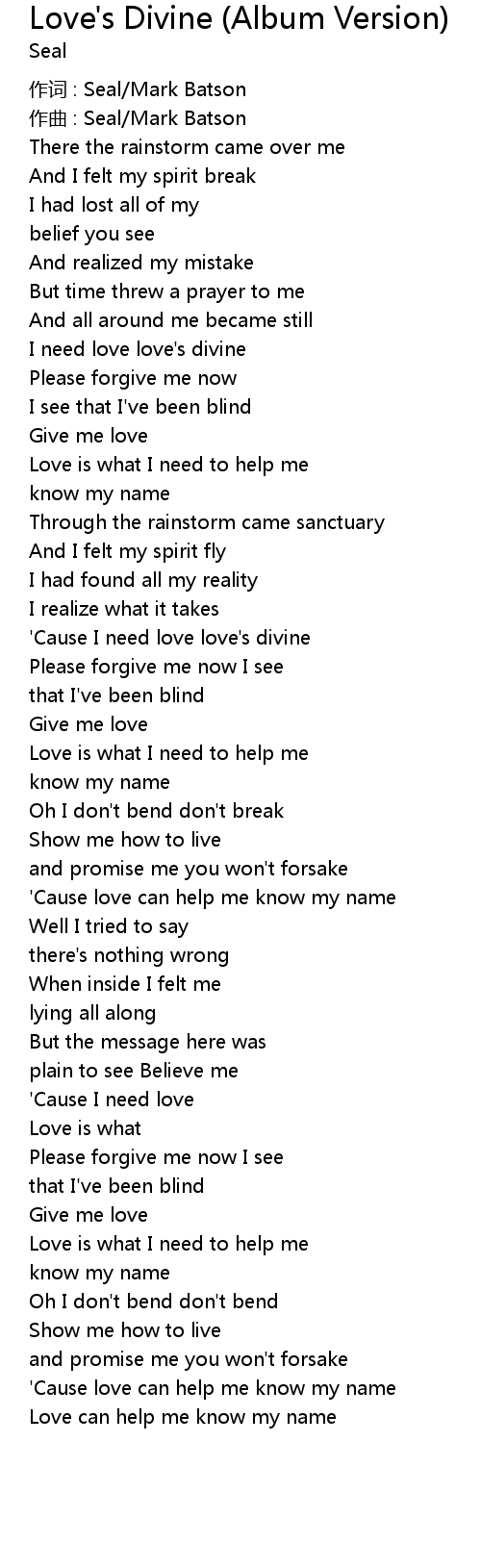 | 'Cause I need love love's divine | |