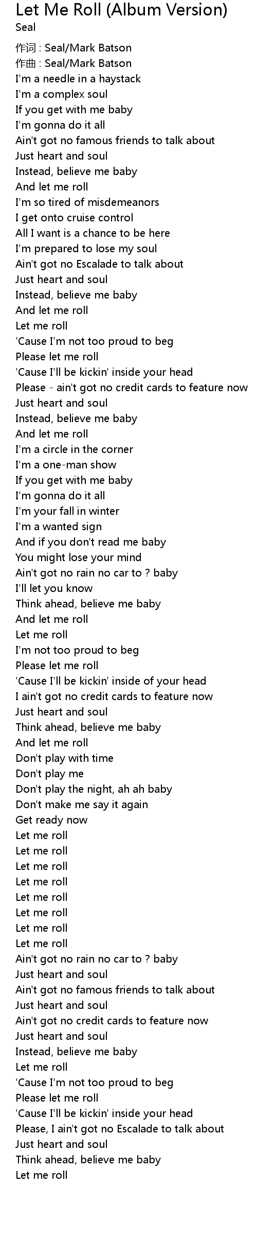 | Please let me roll | |