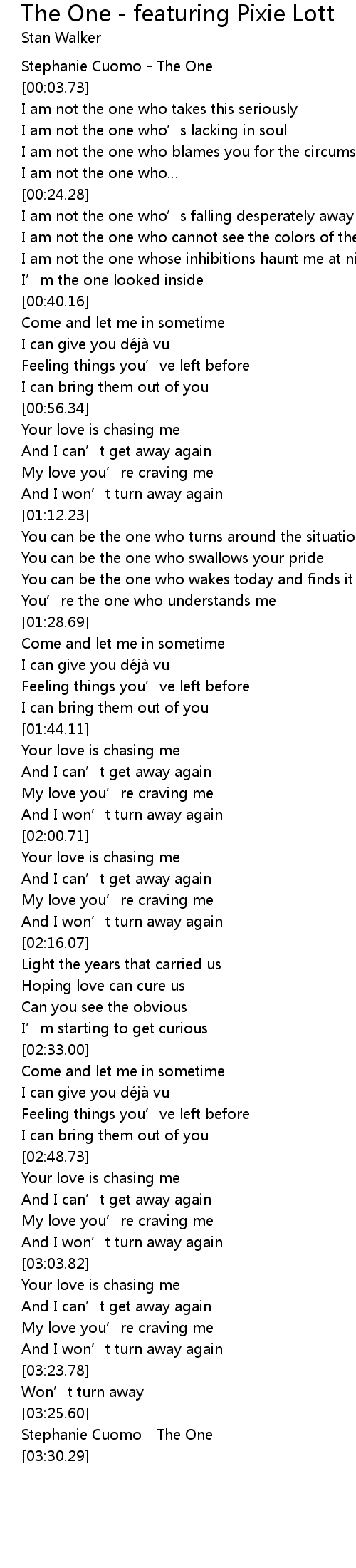 | [03:28.42] | Stephanie Cuomo - The One |