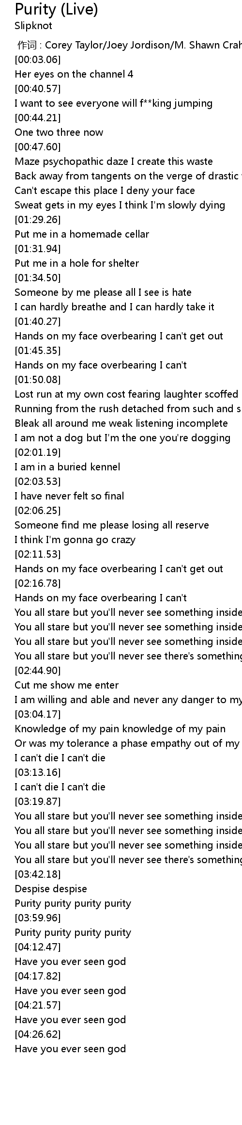 | [03:50.04] | Purity purity purity purity |