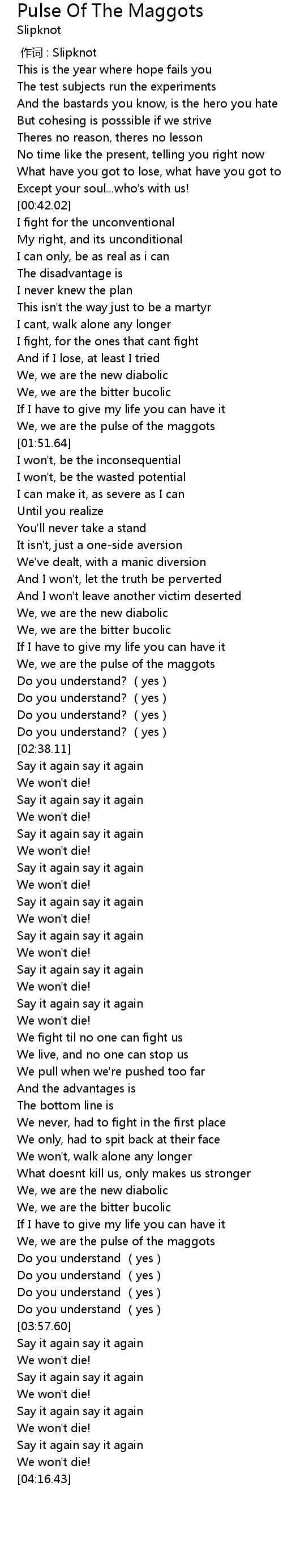 | [02:24.51] | We, we are the pulse of the maggots |