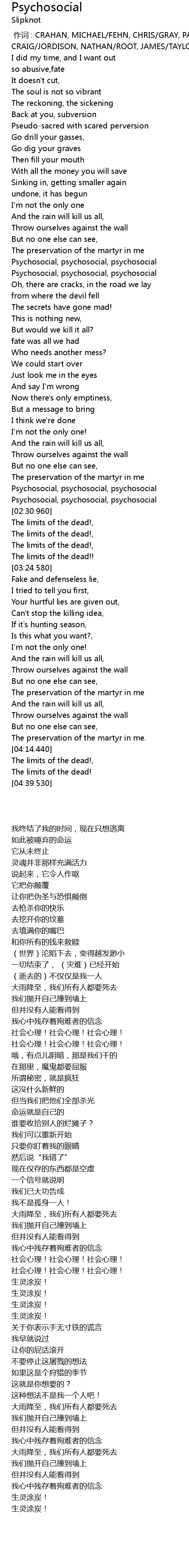 | [01:26.880] | Psychosocial, psychosocial, psychosocial |