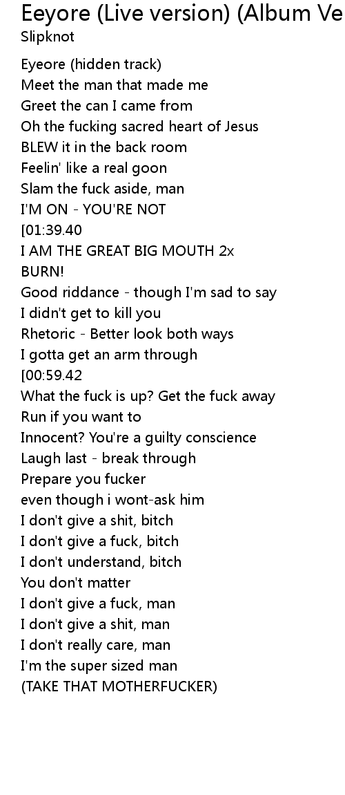 | [01:40.05] | (TAKE THAT MOTHERFUCKER) |