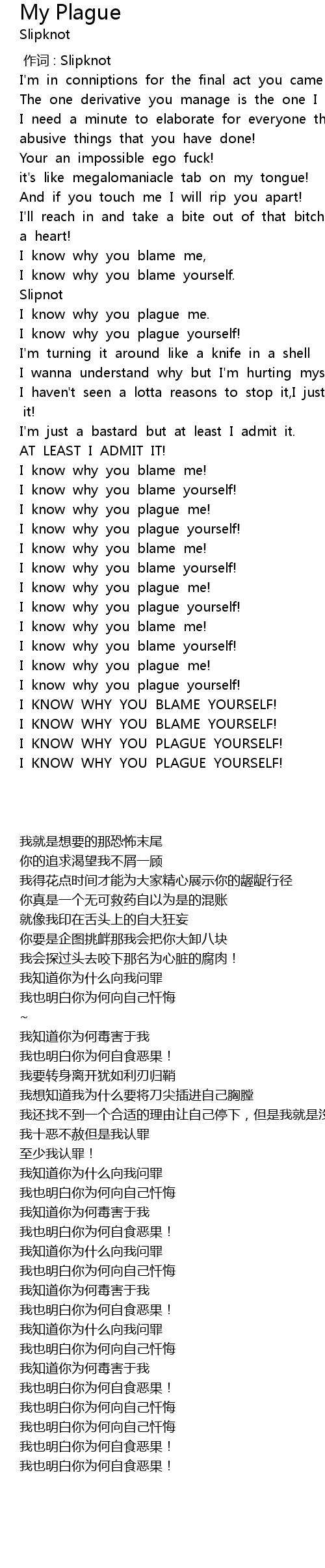 | [03:30.99] | I KNOW WHY YOU PLAGUE YOURSELF! |