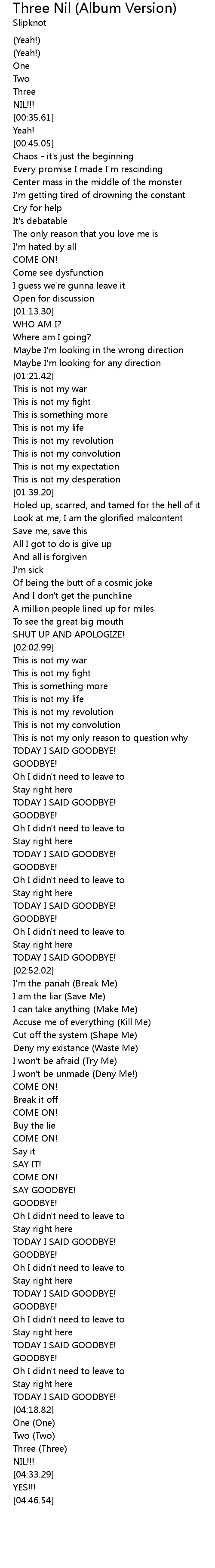 Three Nil (Album Version) Lyrics