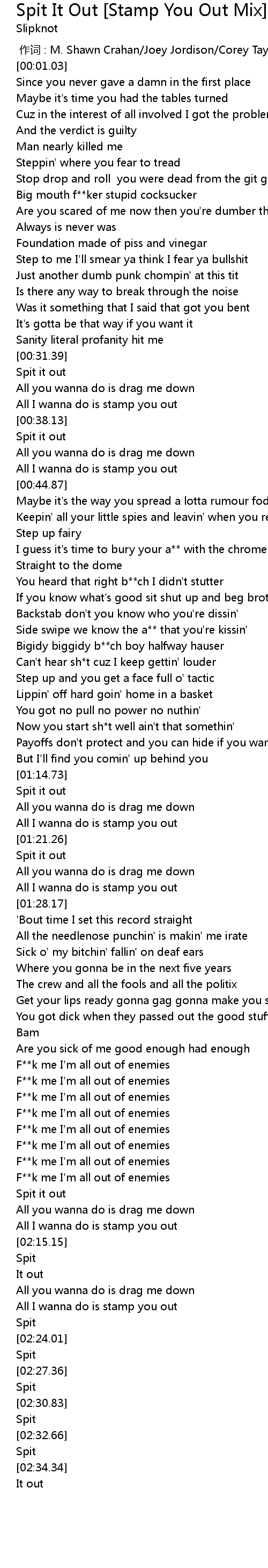 | [00:00.00] | 作词 : M. Shawn Crahan/Joey Jordison/Corey Taylor/Paul Gray |