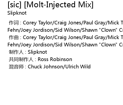 | [00:00.000] | zuo qu : Corey Taylor Craig Jones Paul Gray Mick Thomson Chris Fehn Joey Jordison Sid Wilson Shawn " Clown" Crahan |