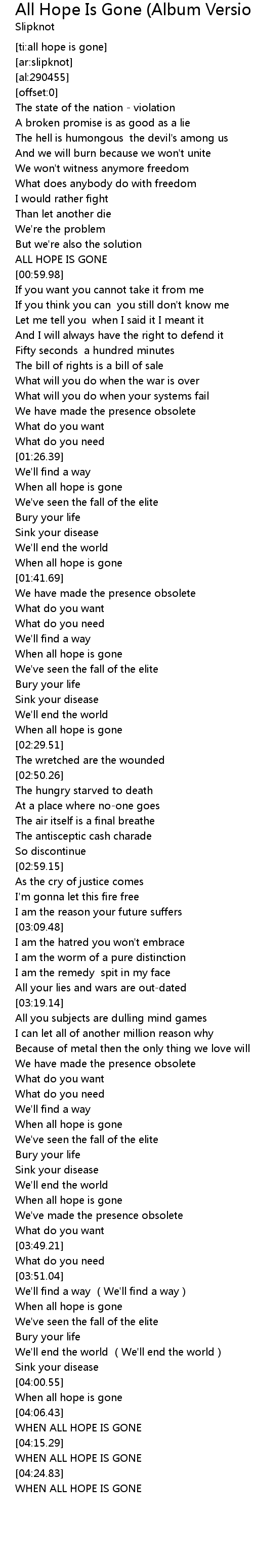 | [04:13.74] | WHEN ALL HOPE IS GONE |