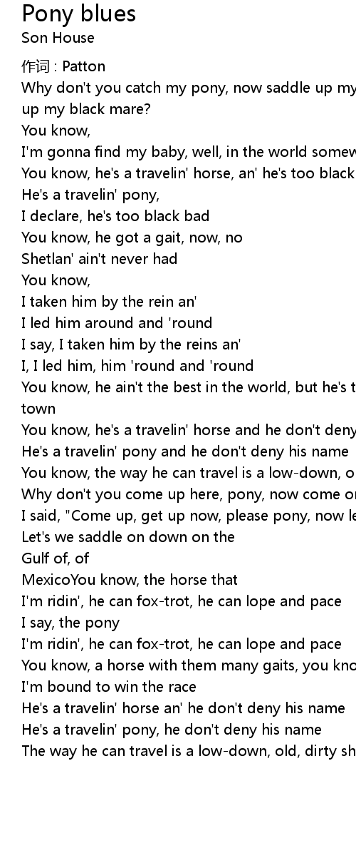 | Why don't you catch my pony, now saddle up my black mare?...my pony, saddle up, up my black mare? | |