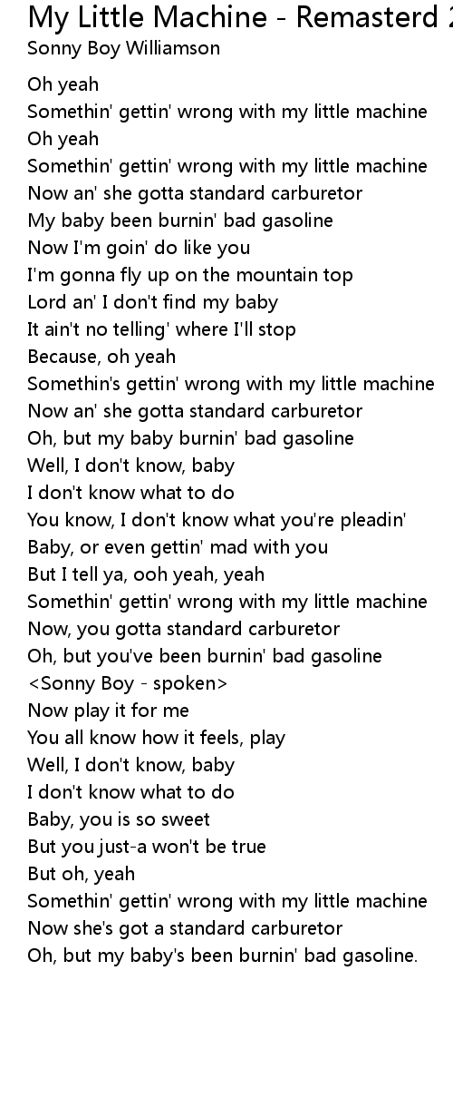 Somethin' gettin' wrong with my little machine |