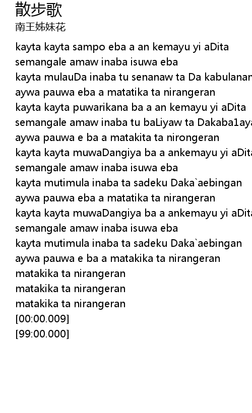 | [00:23.09] | kayta kayta sampo eba a an kemayu yi aDita |
