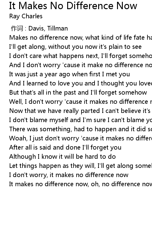 | Song | It Makes No Difference Now |