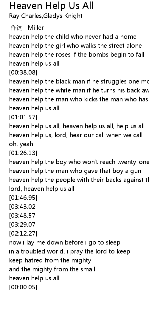 | [01:06.79] | heaven help us all, heaven help us all, help us all |