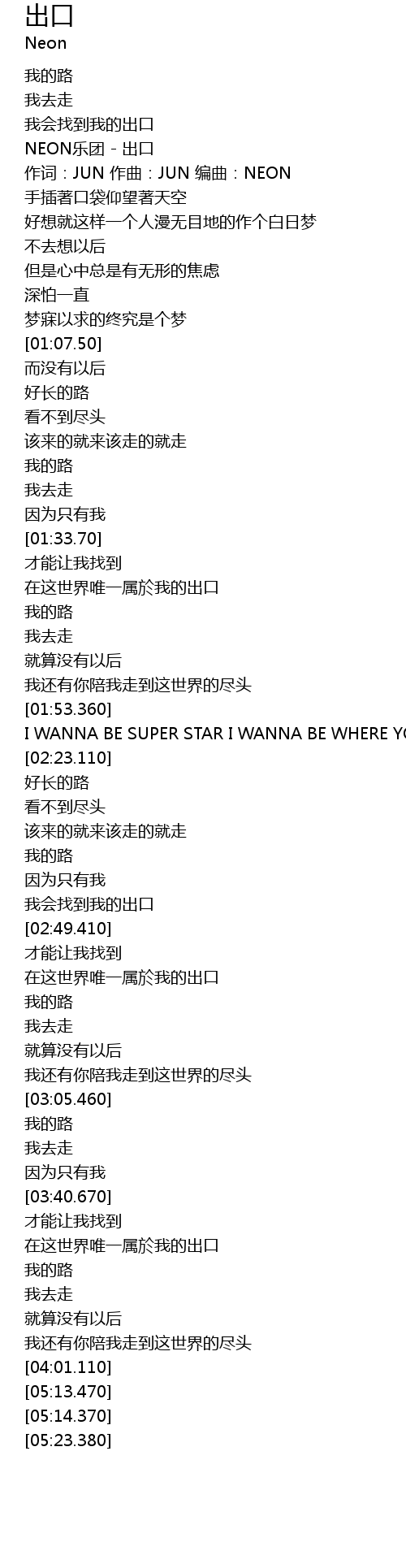 | [00:17.550] | NEON乐团 - 出口 |