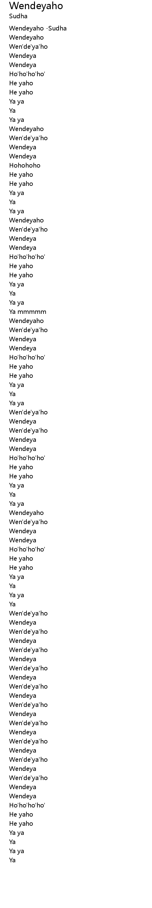 Wendeyaho -Sudha |