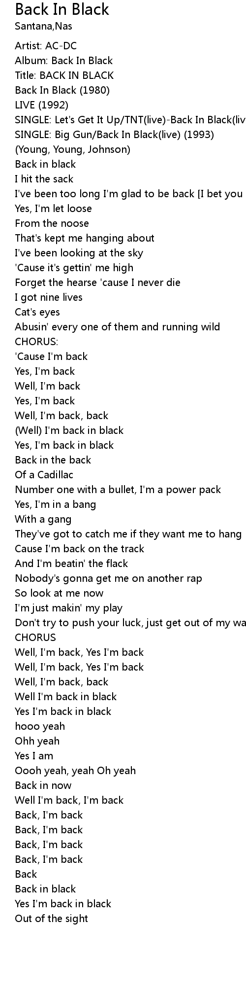 | Well I'm back in black | |