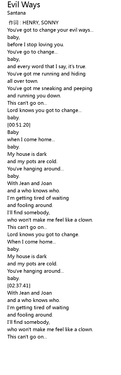 | [00:17.16] | You' ve got to change your evil ways... |