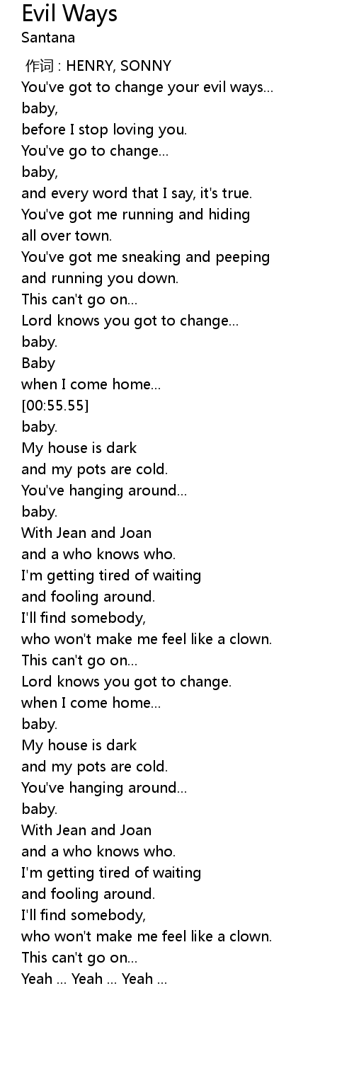 | [00:16.92] | You' ve got to change your evil ways... |
