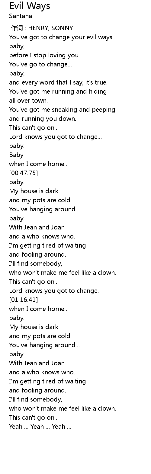 | [00:00.00] | zuò cí : HENRY, SONNY |