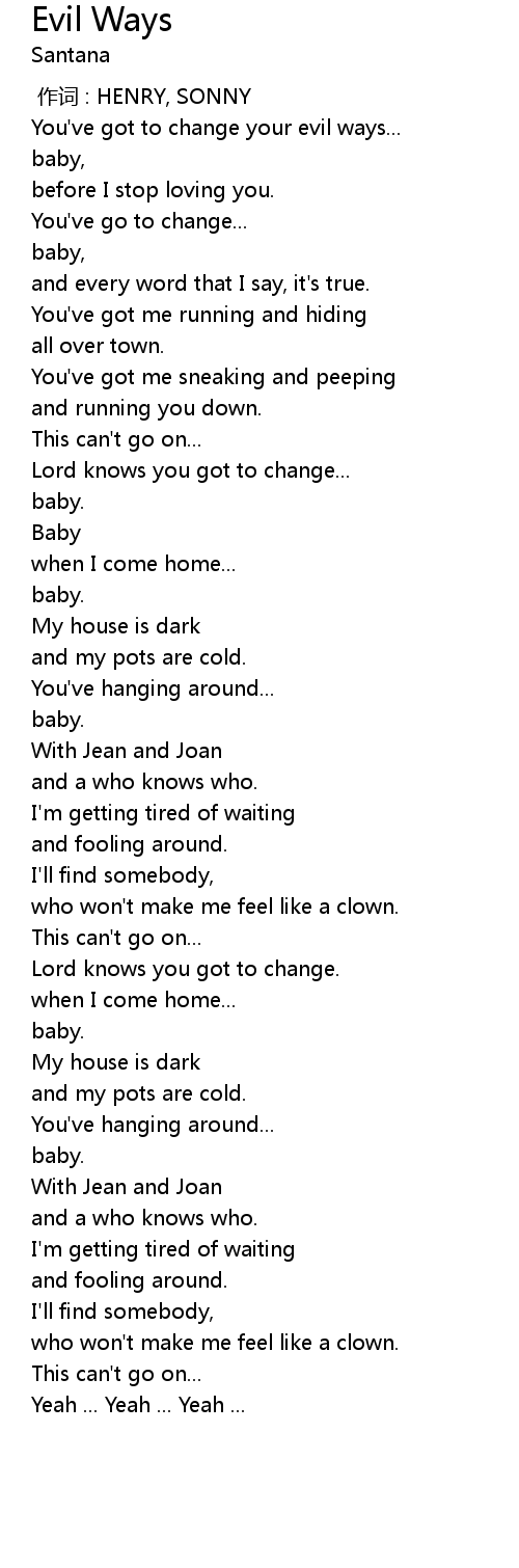 | [00:17.65] | You' ve got to change your evil ways... |
