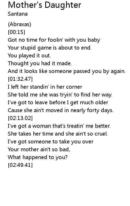 | [01:47.68] | She told me she was tryin' to find her way. |