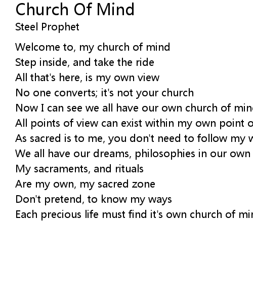 | Welcome to, my church of mind | |