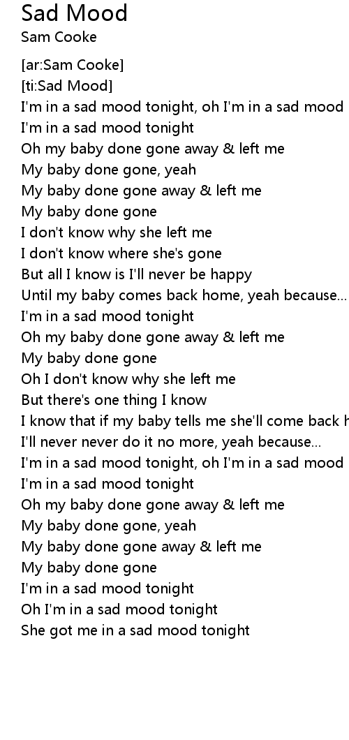 I'm in a sad mood tonight, oh I'm in a sad mood |