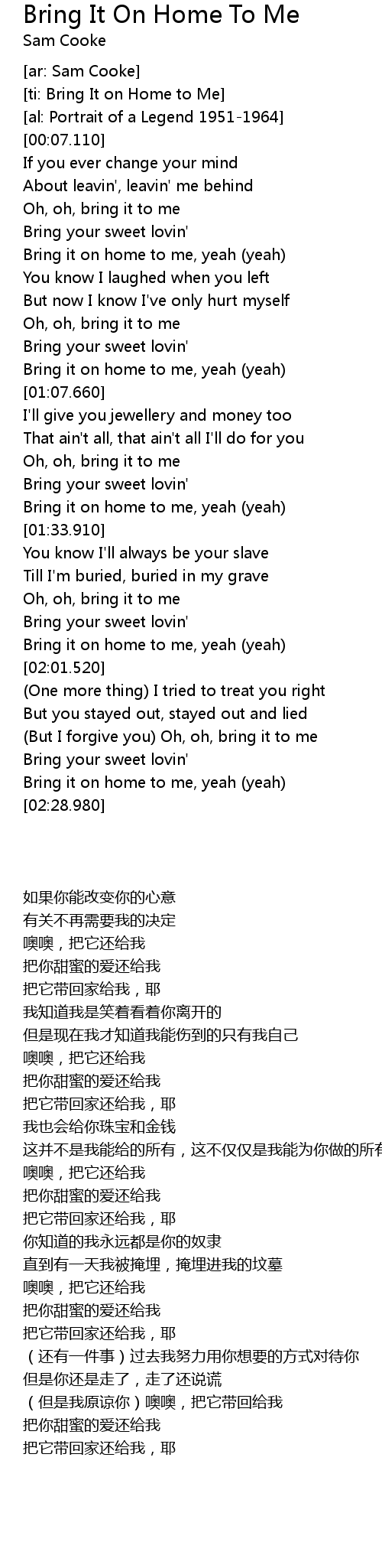 [ti: Bring It on Home to Me] |