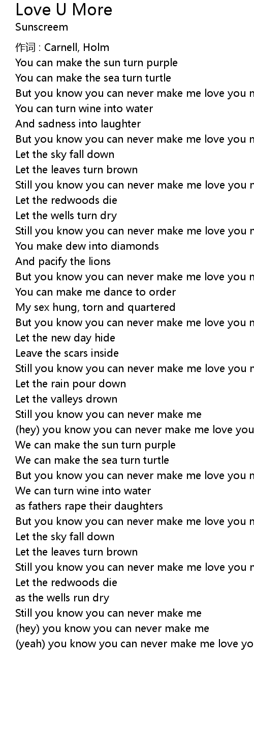 | yeah you know you can never make me love you more |