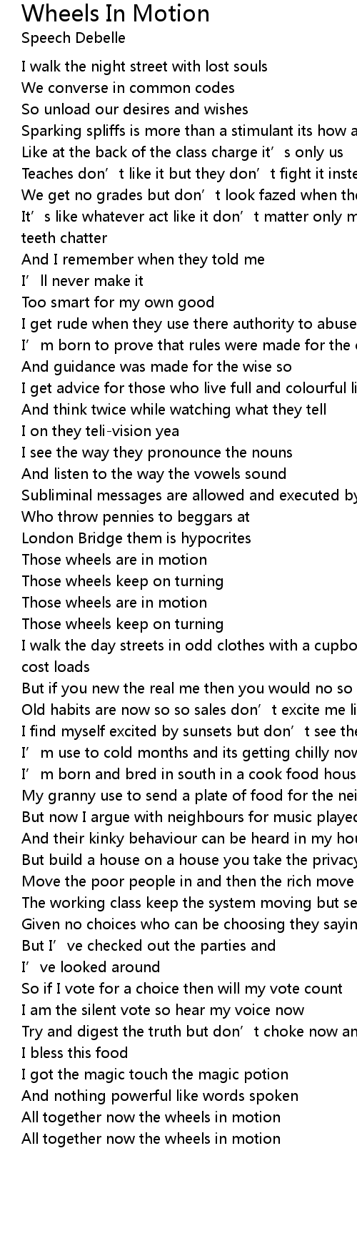 | All together now the wheels in motion | |