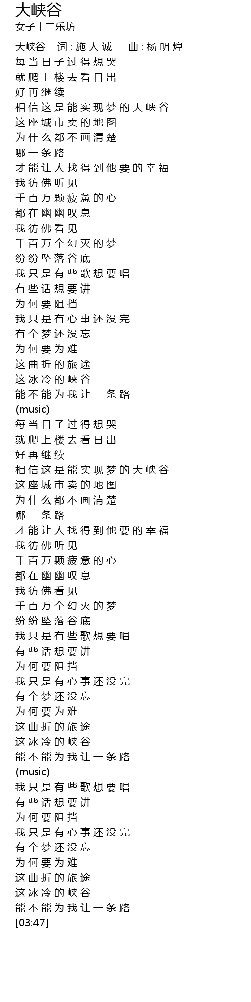 | [00:00] | 大峡谷 词 : 施 人 诚 曲 : 杨 明 煌 |