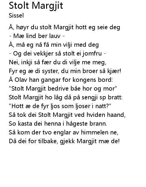 | Å, høyr du stolt Margjit hott eg seie deg | |