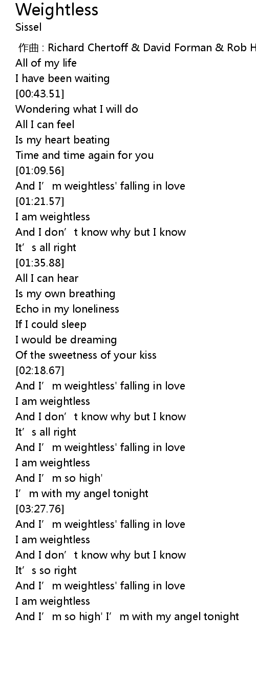 | [04:05.29] | And I’m so high' I’m with my angel tonight |