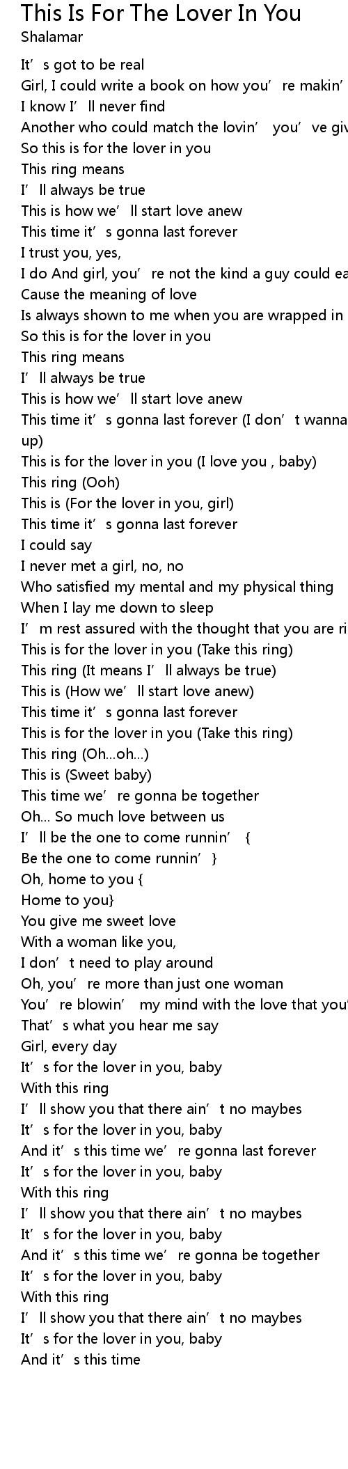 | Another who could match the lovin’ you’ve givin’ to me | |