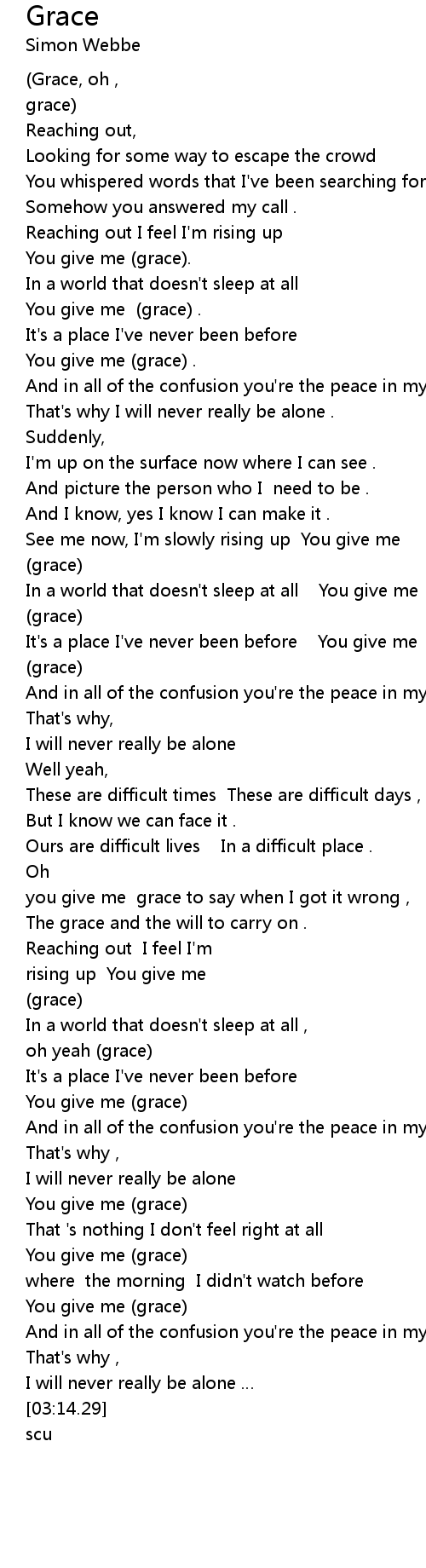 | [00:55.04] | And in all of the confusion you're the peace in my soul. |