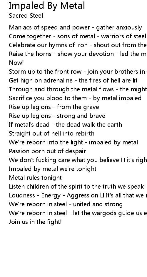 | We' re reborn in steel let the wargods guide us ever, guide us ever on | |