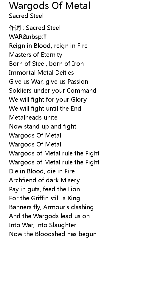 | 作词 : Sacred Steel | |