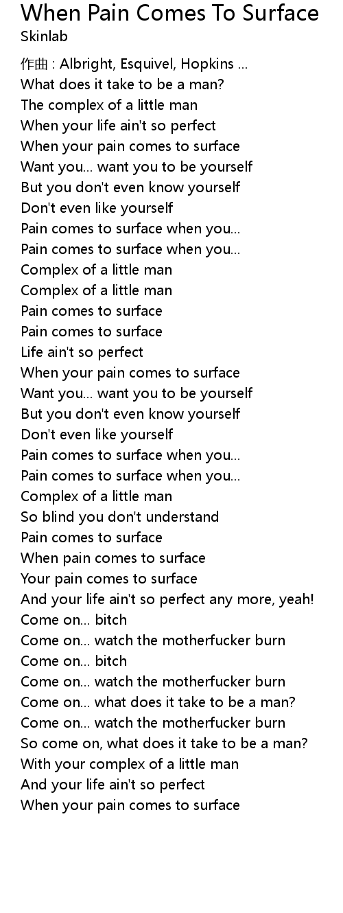 | Your pain comes to surface | |