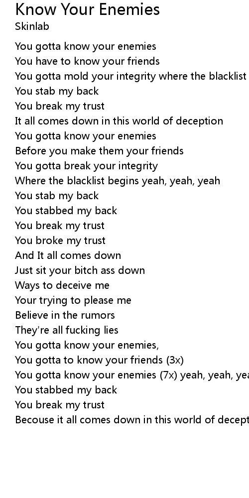 You gotta know your enemies (7x) yeah, yeah, yeah