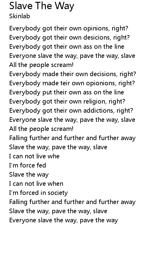 Slave the way, pave the way, slave |