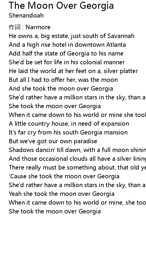 | When it came down to his world or mine she took, the moon over Georgia | |