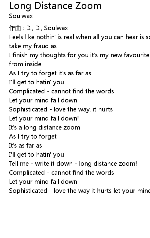 | Song | Long Distance Zoom |