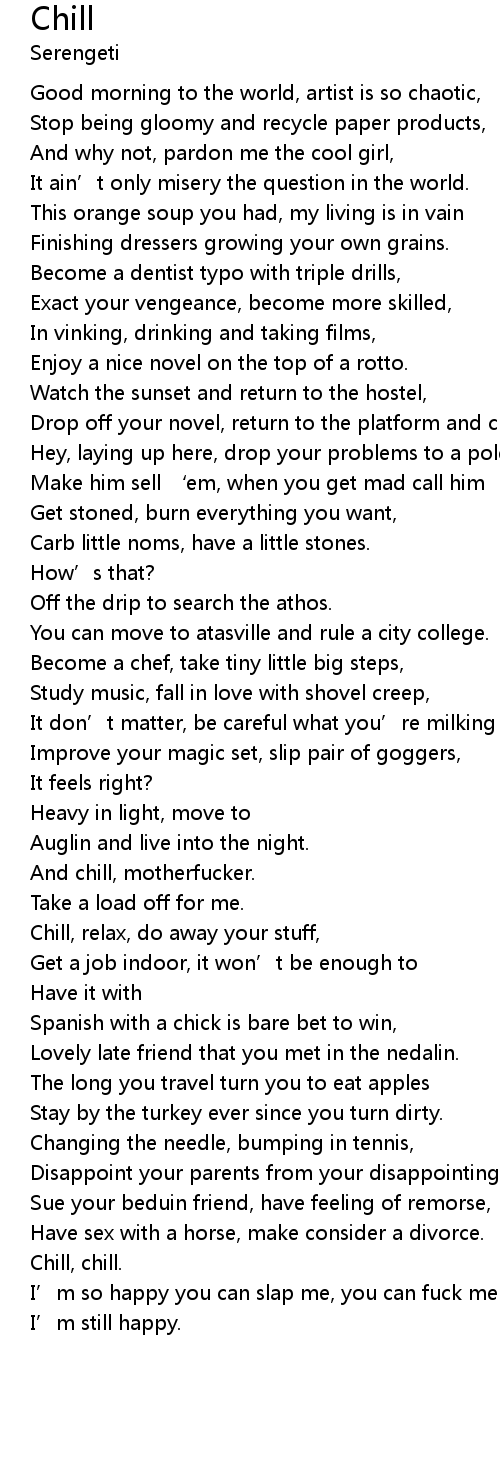 | Chill, relax, do away your stuff, | |