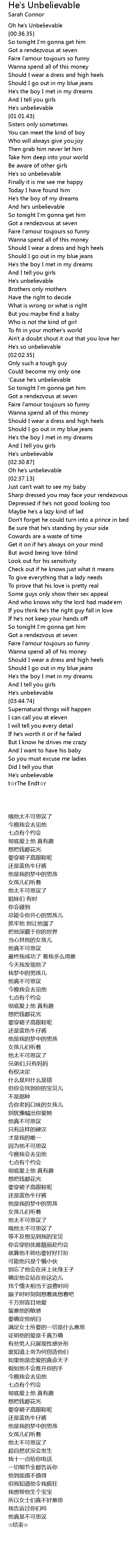 | [02:01.36] | He' s so unbelievable |