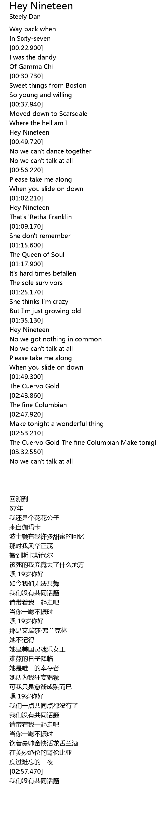 | [00:48.350] | Hey Nineteen |