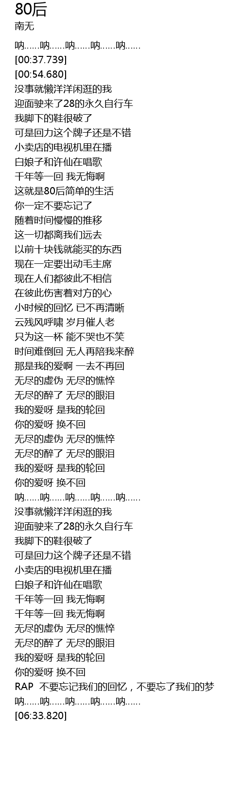 | [01:49.300] | zhè jiù shì 80 hòu jiǎn dān de shēng huó |