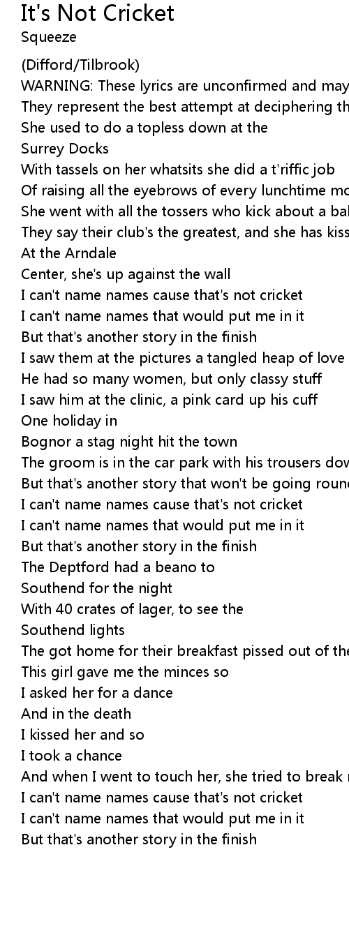 WARNING: These lyrics are unconfirmed and may be inaccurate. |
