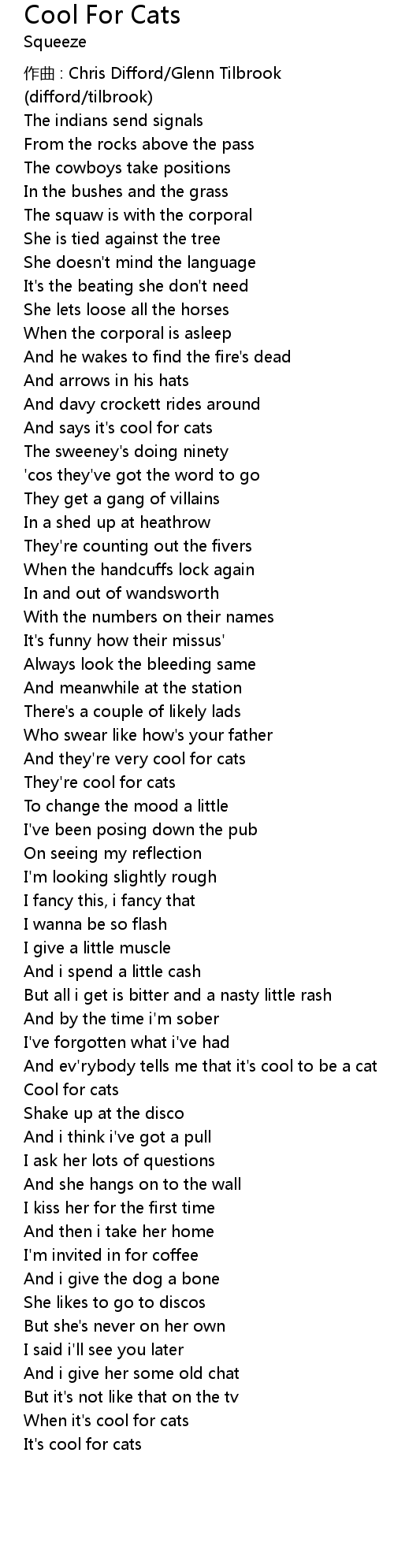 | Song | Cool For Cats |